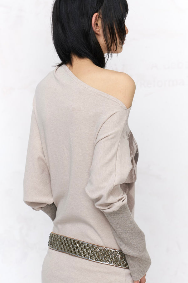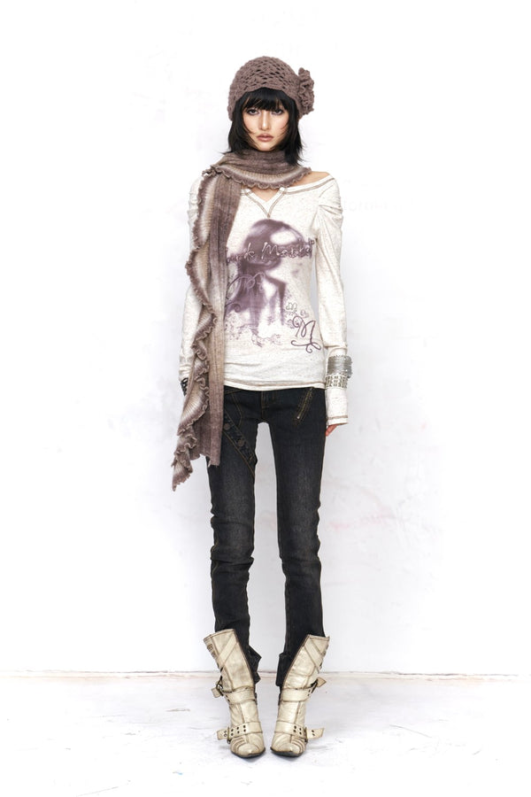 Knit Chain Batwing Sweater Draped high-neck design Batwing sleeves Graffiti text print on front Chain–graphic...