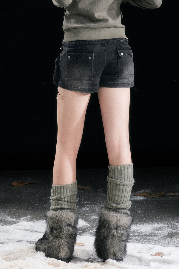 Gia Washed Blade Shorts Washed-black finish Cargo-style pouch pockets Lace-up detailing at sides Double-button front...