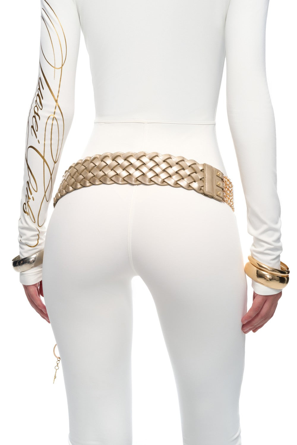 Starlight Halo Loop Belt Champagne gold finish Circular link and rhinestone detailing Star charm drop...