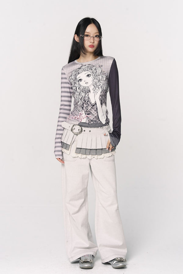 Nami Girl Graphic T-Shirt Loose, relaxed fit Manga-inspired girl print on the front Pink raglan...