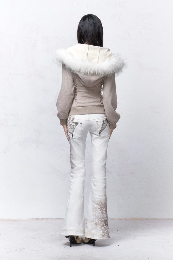 Lace-Up Embroidery Flared Jeans Mid-rise waist design Flare silhouette Lace-up detail Delicate printed and embroidered...