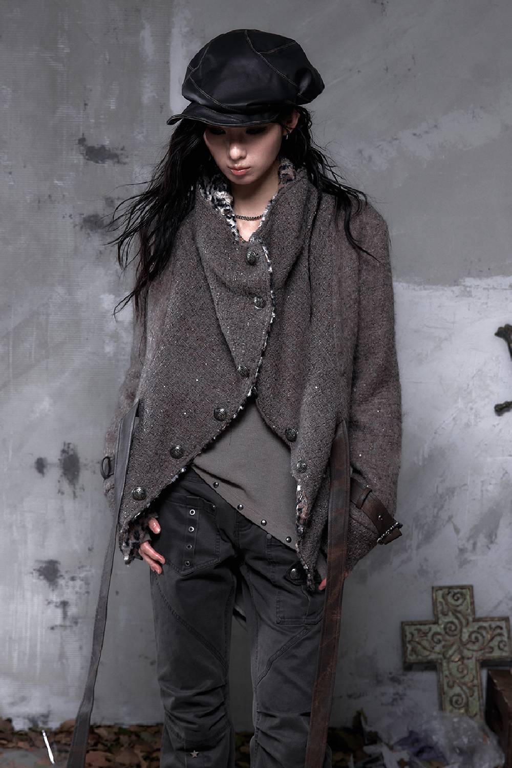 Welcome to Romantic Decay – No Romance's AW25 collection. Romantic Decay captures beauty in deterioration. Striped knits, sheer chiffon, distressed textures, and faux fur are layered into silhouettes that feel fragile yet defiant. These are pieces that look loved, weathered, and emotionally charged — designed to move between darkness and desire without ever choosing one.