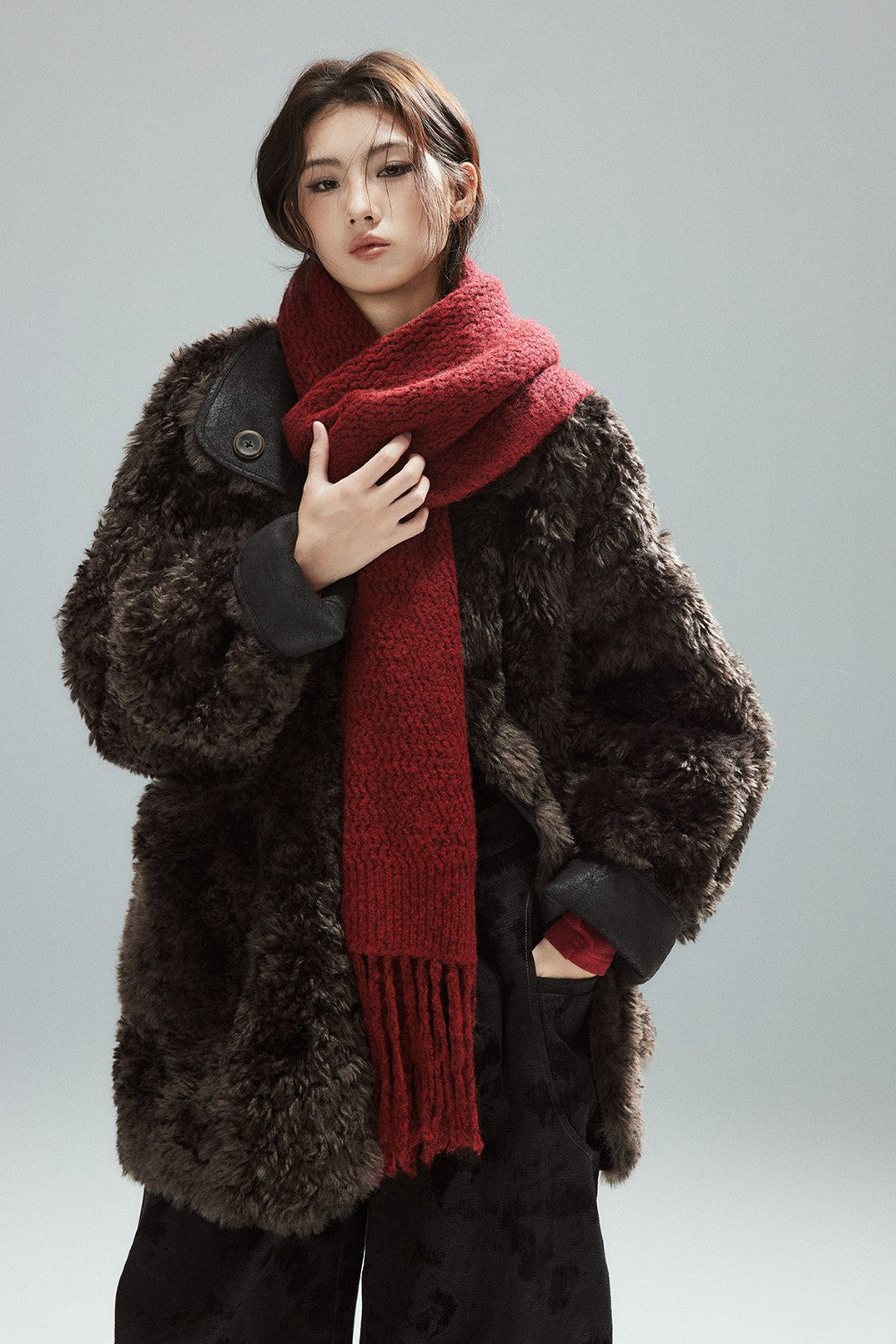 Red Fringe Knit Scarf