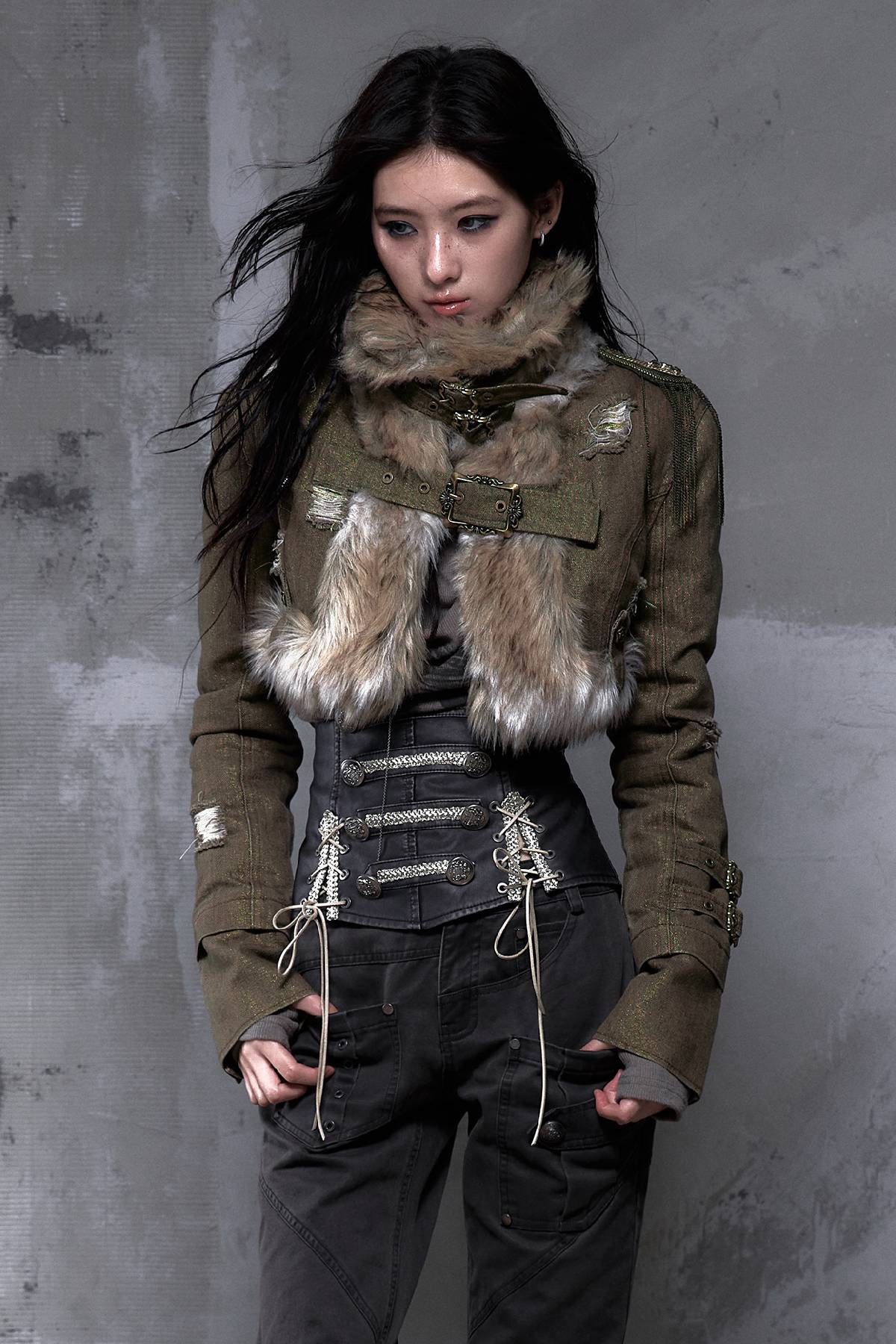 • Military-inspired button detailing