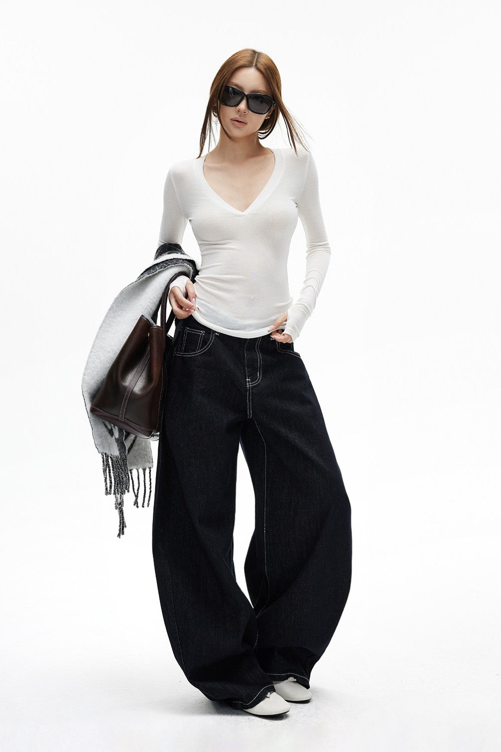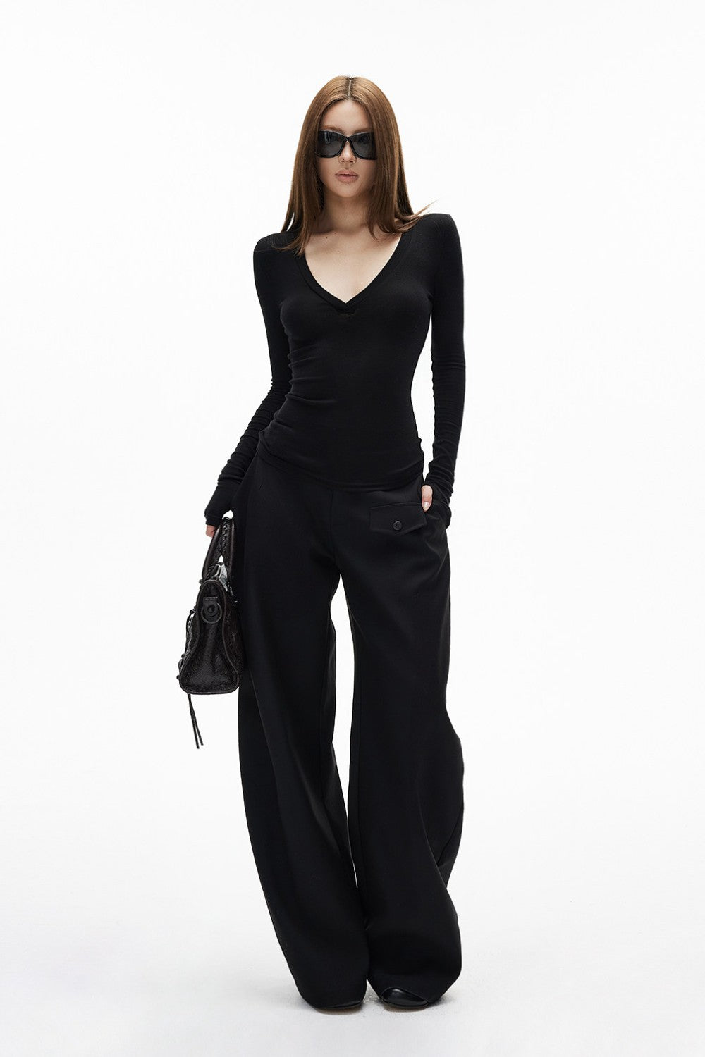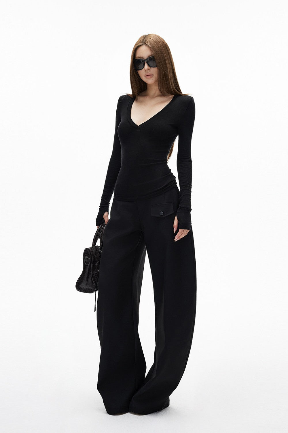 • Deep V neckline